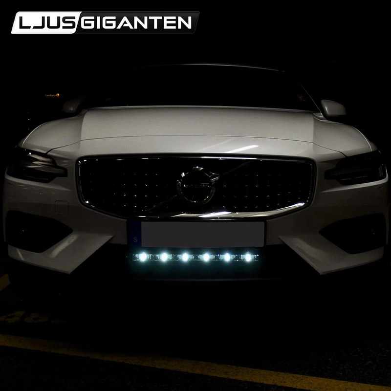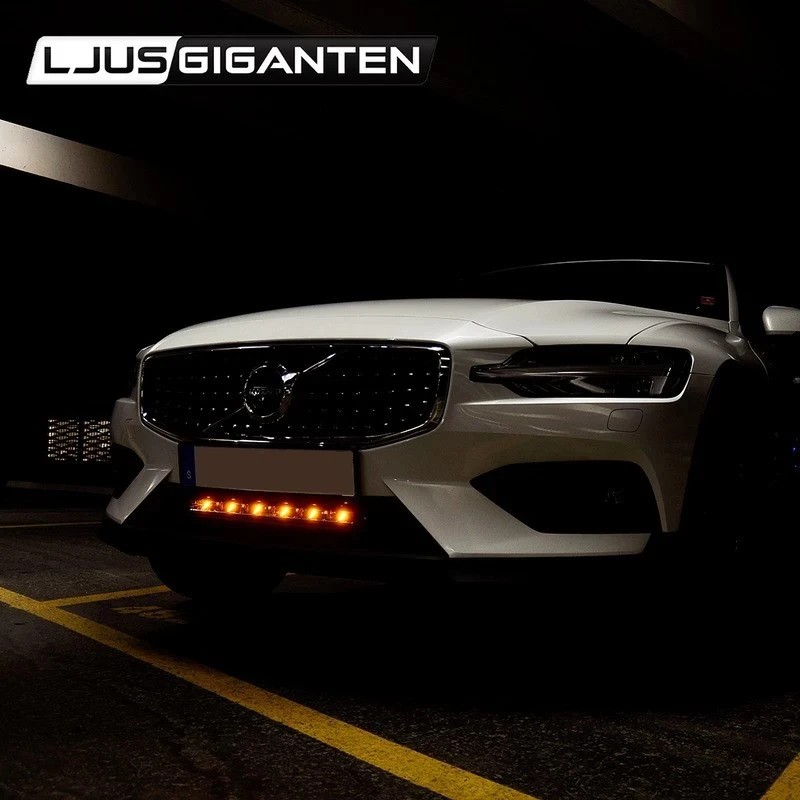| Montering | Rampen leveres med doble monteringsmuligheter. Den kan monteres både over og under nummerskiltet, eller felles inn ved hjelp av de medfølgende sidefestene. |
